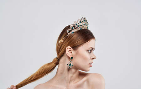 portrait of a woman with a crown on her head makeup decoration isolated background