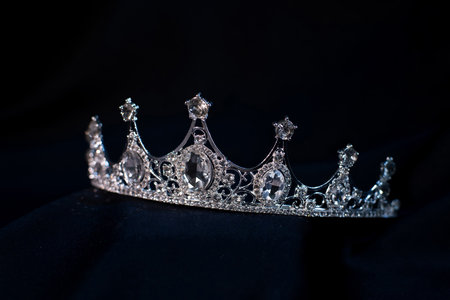 Close-up of a gleaming silver crown, symbolizing power and royalty.