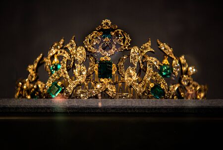 low key image of beautiful queen crown. vintage filtered. selective focus