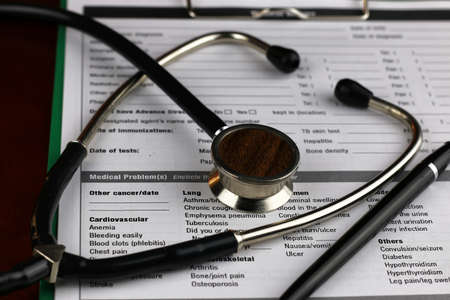 stethoscope on a report stethoscope on a clipboard stethoscope on a book