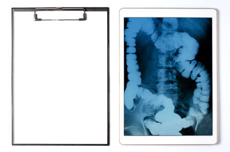 X-ray image of the intestine in the tablet. The concept of telemedicine and diagnosis of diseases