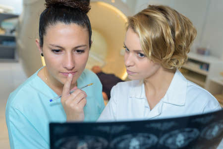 patient examines the x-ray and mri in the office. Health care concept