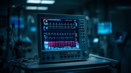 Advanced Medical Monitoring System Displaying Crucial Patient Vital Sign Data in a Clinical Environment.
