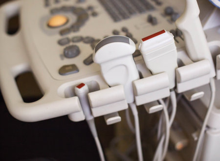 Ultrasound machine in the hands of a doctor at the hospital