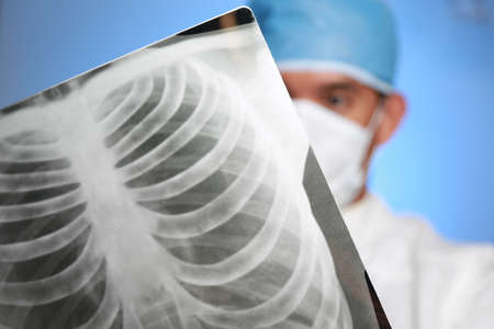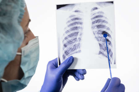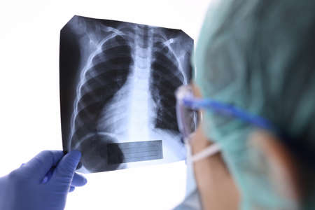Healthy lungs after pneumonia.Doctor looking at an x-ray. The doctor does an examination of the lungs.