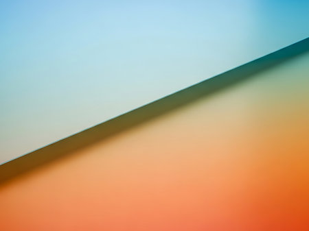 A colorful orange flat lay background with sharp layers and shadows with copy space