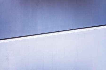 A diagonal line divides a white and blue concrete wall, minimalist copy space and urban design.