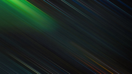 Bright yellow light streaks glow and move diagonally across a dark background. Clear details and vibrant color...