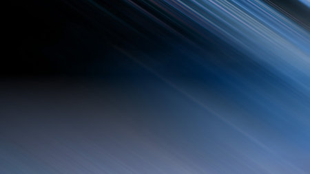 Smooth black backdrop accentuated by soft blue anamorphic bokeh effects. Gentle light waves flow across the surface, creating an ethereal atmosphere. Generative AI.