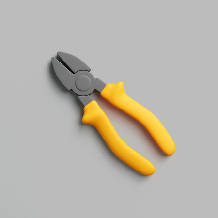 3D render of yellow-handled pliers lying on a gray background