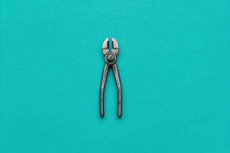 A pair of metal pliers is centered on a vibrant teal background, showcasing its design and functionality. This image highlights the tool's details and can be used in various contexts related to DIY, construction, and repair work. ai generated.