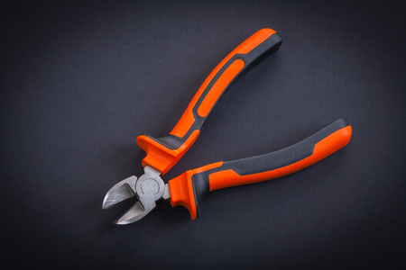 opened nippers with orange handles aerial view on black backgrou