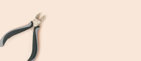 Banner with wire cutters on a beige background. Place for text.