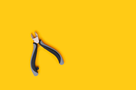 Wire cutters on a yellow background. Place for text.