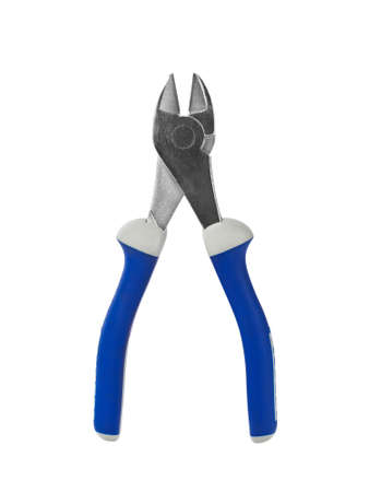 blue cutting pliers isolated on white background macro photo