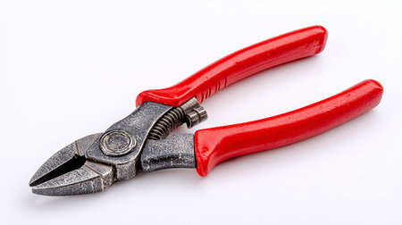 High-resolution image of pliers with red handles against a black background. Ideal for showcasing tools used in home improvement and DIY projects.