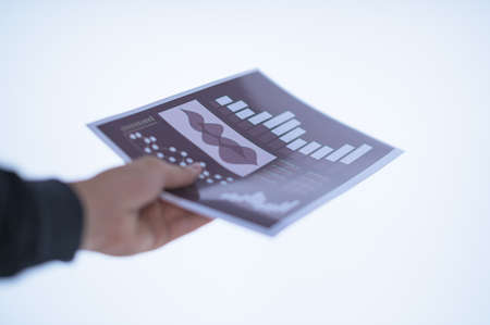 business analysis and statistics concept, desk with mixed graphs and charts on clipboard