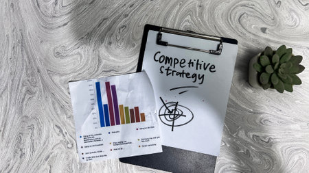 Concept of Competitive Strategy write on paperwork isolated on Wooden Table.
