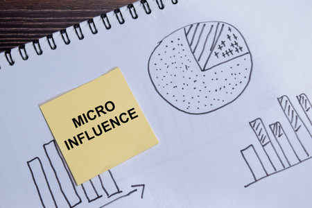 Concept of micro influencer write on sticky notes isolated on Wooden Table. For marketing analytics and social media performance metrics