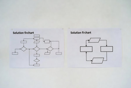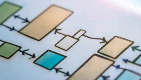 Close up image of a flowchart showing various steps of a process, representing workflow, stages, and methodology.