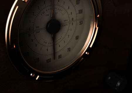A close up view of the dial of vintage radio from 1930 on a dark moody background - 3D render