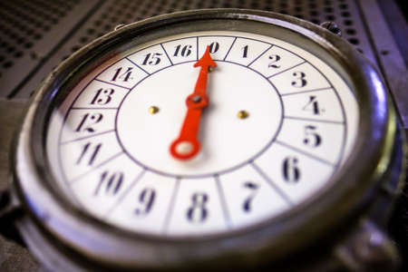Old weighing dial of scales. Vintage mechanical scales. Libra. Vintage weathered weighing
