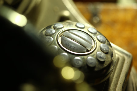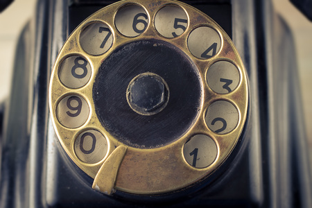 Fifties antique British GPO 332L ivory color bakelite telephone - macro shot of dial detail