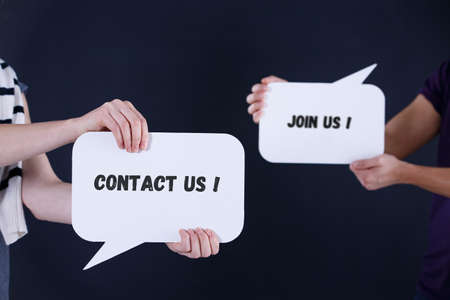 group friends holding speech bubbles