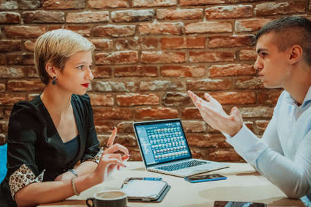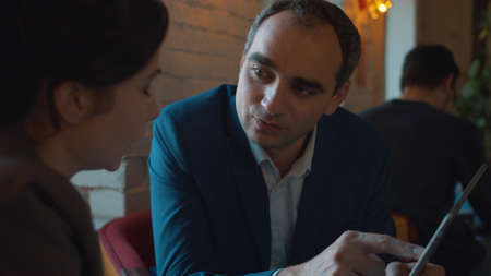 Business partners discuss the contract in cafe