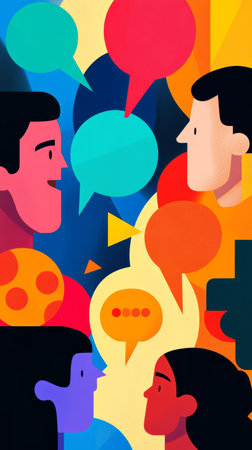 Dynamic interaction two stylized figures captured in a colorful exchange with speech bubbles