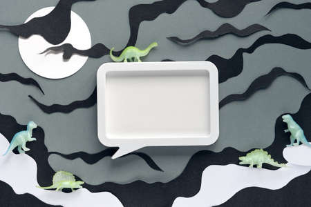 Halloween paper decorations chat bubble mock up on purple background. Flat lay, top view, minimal style, copy space, banner for your site, party invitation, flyer, traditional color