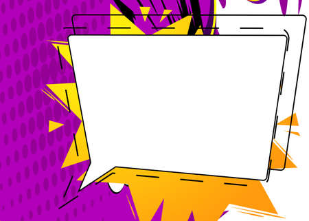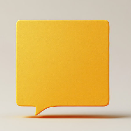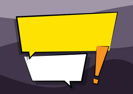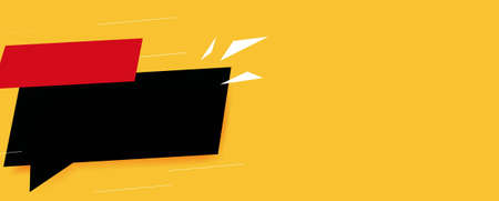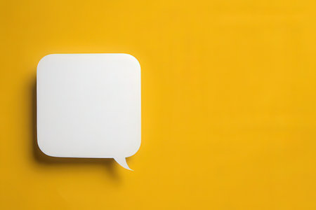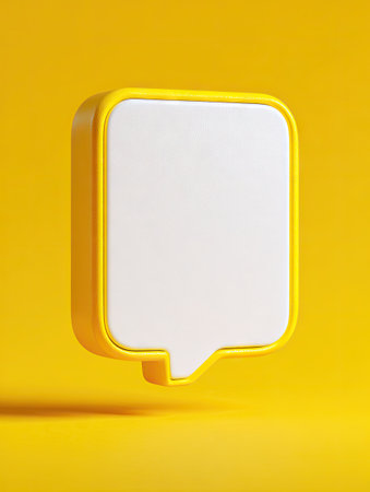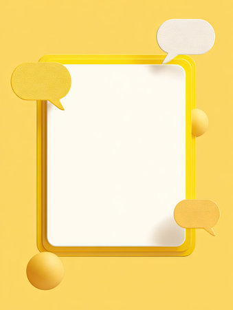 An abstract composition features a yellow rectangular frame with a white interior, accompanied by several speech bubble elements. The image uses a clean, modern design with a dominant yellow color scheme. It appears to be an ideal visual for communication, announcements, or presentations and is suitable for various commercial applications.
