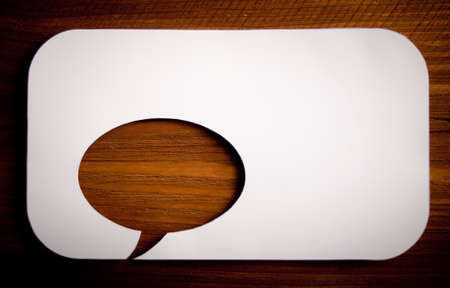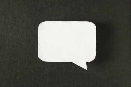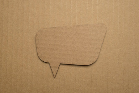Speech bubble paper balloon label on cardboard background with shadow. Blank speech bubble on paper background.