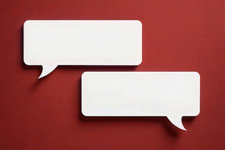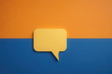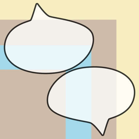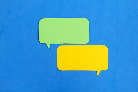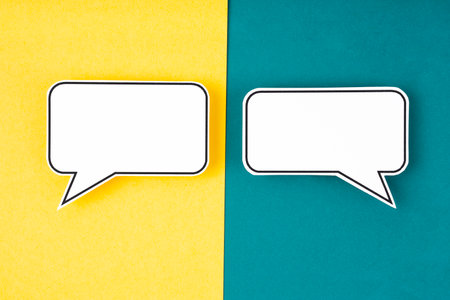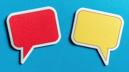 Two colorful speech bubbles, one red and one yellow, sit against a bright blue backdrop, inviting conversation.