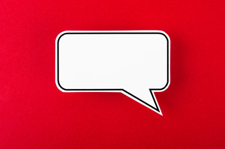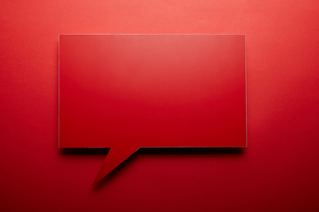 red dialog frame for copy space, speech bubble red, speech dialog talk on banner modern background, template empty balloon speech for copy space text, white simple announcement sign for say chat