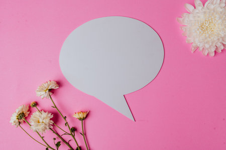 blank speech bubble oval and flower on pink background