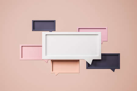 Blank different text message, notification. Pastel speech bubble mockup copy space. Concept of social media and online communication. 3D rendering
