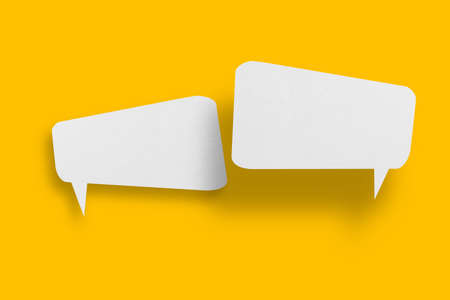 White paper in speech bubble shape set against yellow background.Communication bubbles.