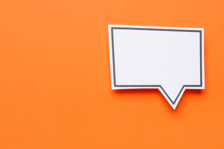 Paper speech bubble on a yellow background. Top view with copy space. Flat lay.