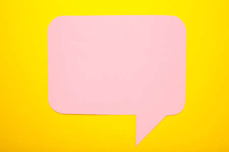 Pink paper speech bubbles on yellow background. Top view
