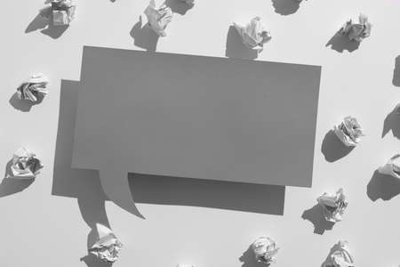 Dialog - two blank speech bubbles on gray backgrounnd. Top view