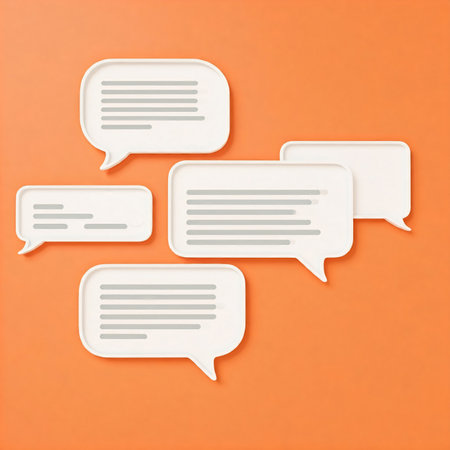 A vibrant collection of speech bubble icons in various colors and dot patterns, artfully arranged on a textured dark surface, symbolizing communication.