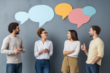 Expressive Young Individuals Inspiring with Colorful Mockup Speech Bubbles