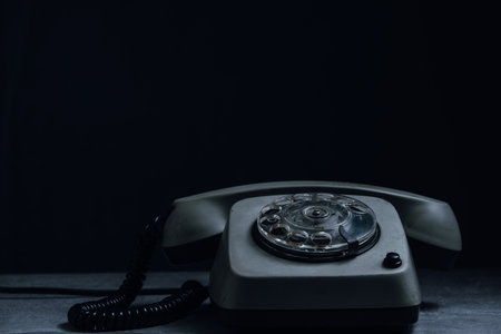 Old rotary phone on a wooden desk