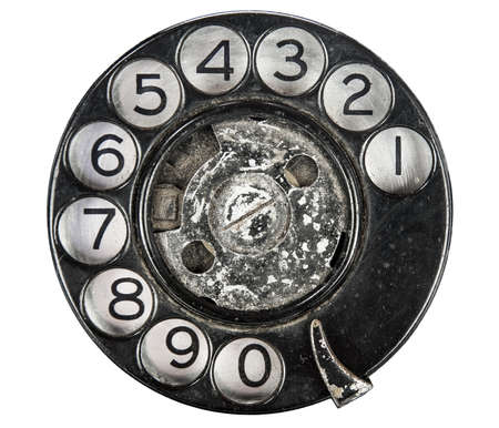 Close up of Vintage phone dial, dirty and scratched - 9, perspective