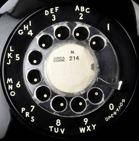 Close shot of old fashioned rotary phone dialer Dial 0 for operator