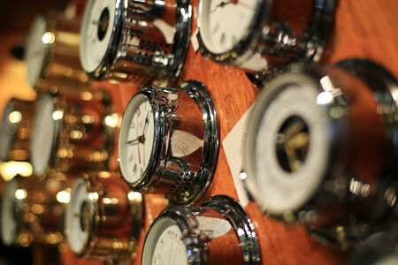 This image features a collection of vintage pressure gauges and measurement devices, showcasing the intricate craftsmanship and unique designs from an earlier time.