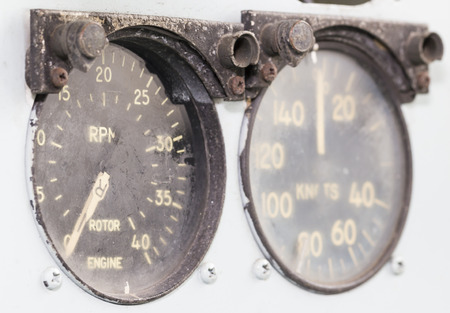 Vintage aircraft cockpit detail. Retro aviation, aircraft instruments