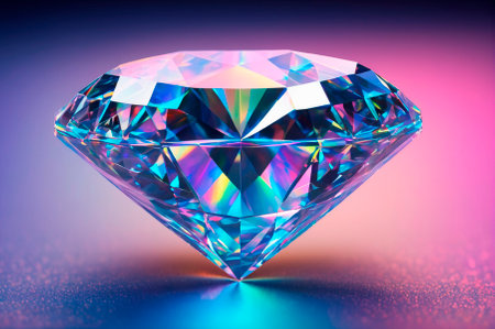 A stunning diamond gem reflects light with vibrant colors, showcasing its brilliance and elegance. Perfect for luxury, beauty, and celebration themes.