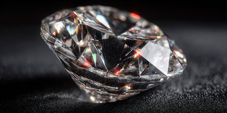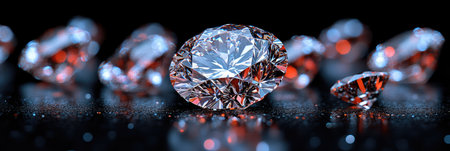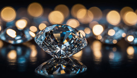 Stunning close-up of a sparkling diamond resting on a dark surface, surrounded by a mesmerizing bokeh background, ideal for luxury design projects.